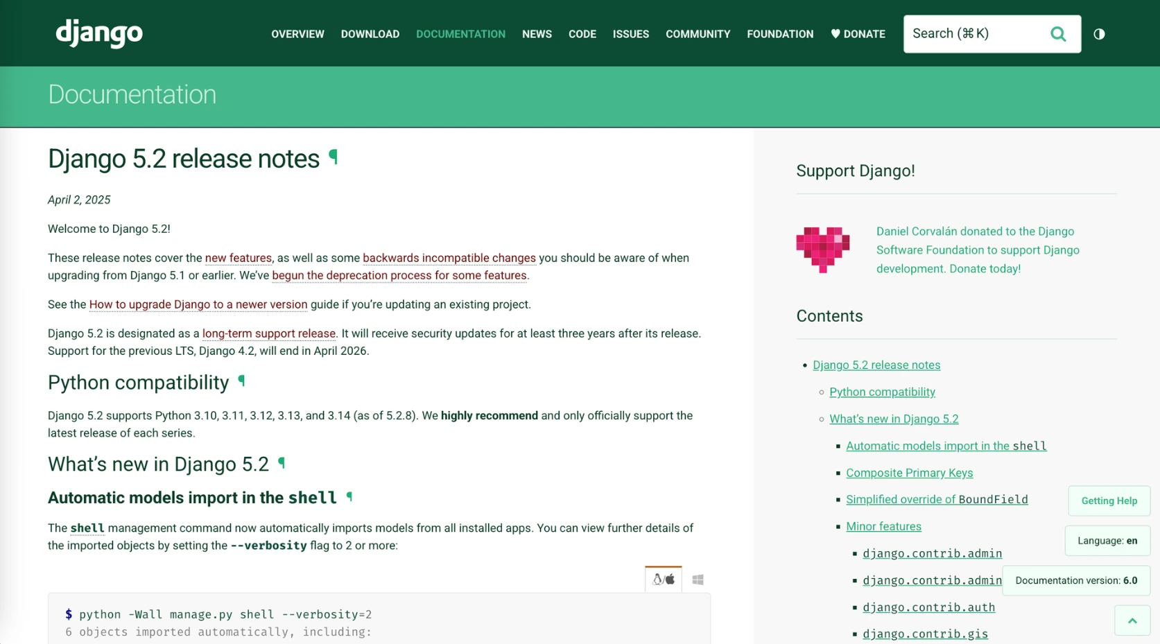 Documentation officielle : Django 5.2 release notes