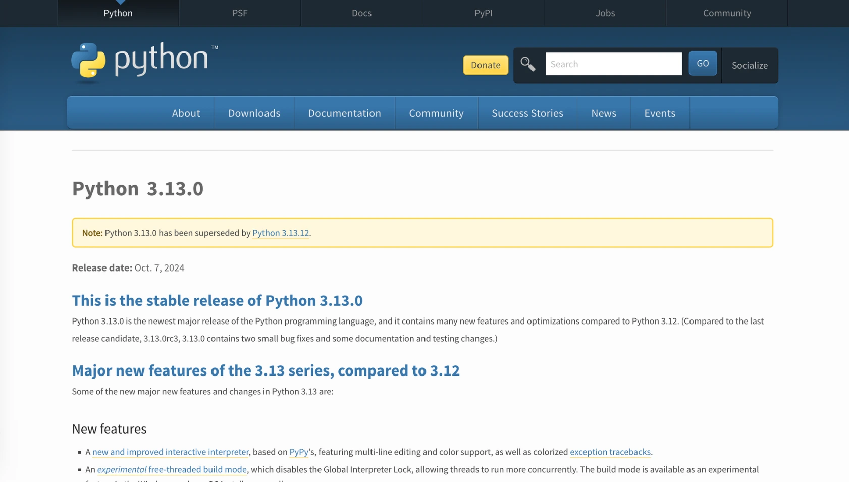 Documentation officielle : https://docs.python.org/3/whatsnew/3.13.html